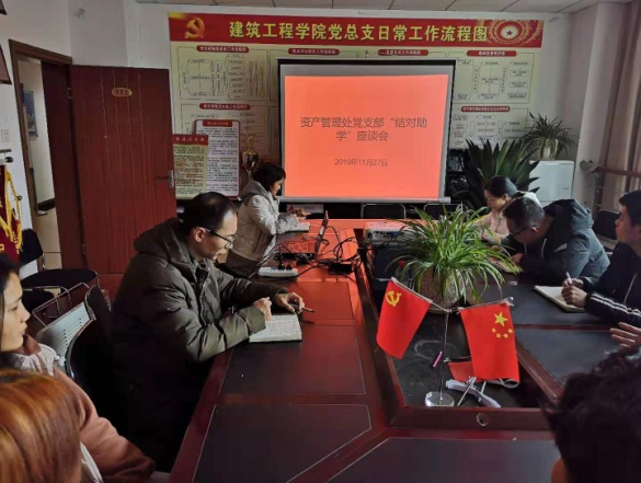 2019年11月27日下午,资产管理处党支部与商业与贸易学院物流教研室党支部共同组织与帮扶学生见面结对,开展新一轮结对助学活动,活动由资产管理处党支部书记印冰主持,商业与贸易学院物流教研室党支部书记张珈源、建筑工程学院辅导员董珈豪等参加活动。