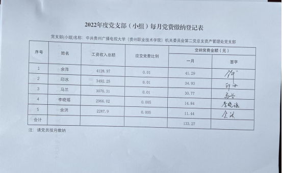 活动中,党支部书记余萍领学了《中国共产党章程》《中国共产党组织工作条例》中关于党员自觉交纳党费的有关规定。随后,全体党员自觉缴纳了1月份党费并签字确认。