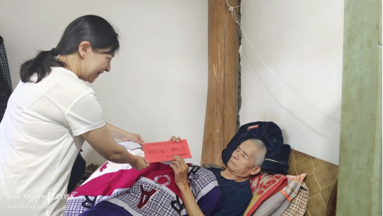 在中国共产党成立101周年之际,为贯彻落实党内关怀、扶助机制,充分体现党组织对生活困难党员的关怀,2022年7月13日,资产管理处党支部开展走访慰问困难党员,真情关怀温暖人心活动,党员代表印冰同志赴从江县刚边壮族乡三联村困难党员梁昌元家里,向他们送去党组织的关怀与温暖。