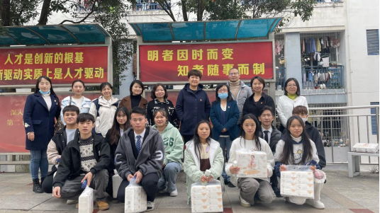 两个党支部的党员同志们与艺术与设计学院的同学们亲切交流,关心学生的学习生活、关注学生的实际困难、关爱学生的健康成长,教育引导学生扣好人生的第一粒扣子。随后,党员同志们给精准扶贫困难学生赠送了学习生活用品。